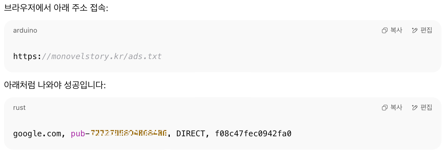 ✅ 3단계: 구독자 본인 블로그 주소/ads.txt 연결 설정